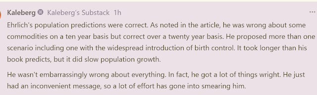 I bring this up because I recently made the observation that Ehrlich has been embarrassingly wrong about everything, a clearly true statement. I received this reply: